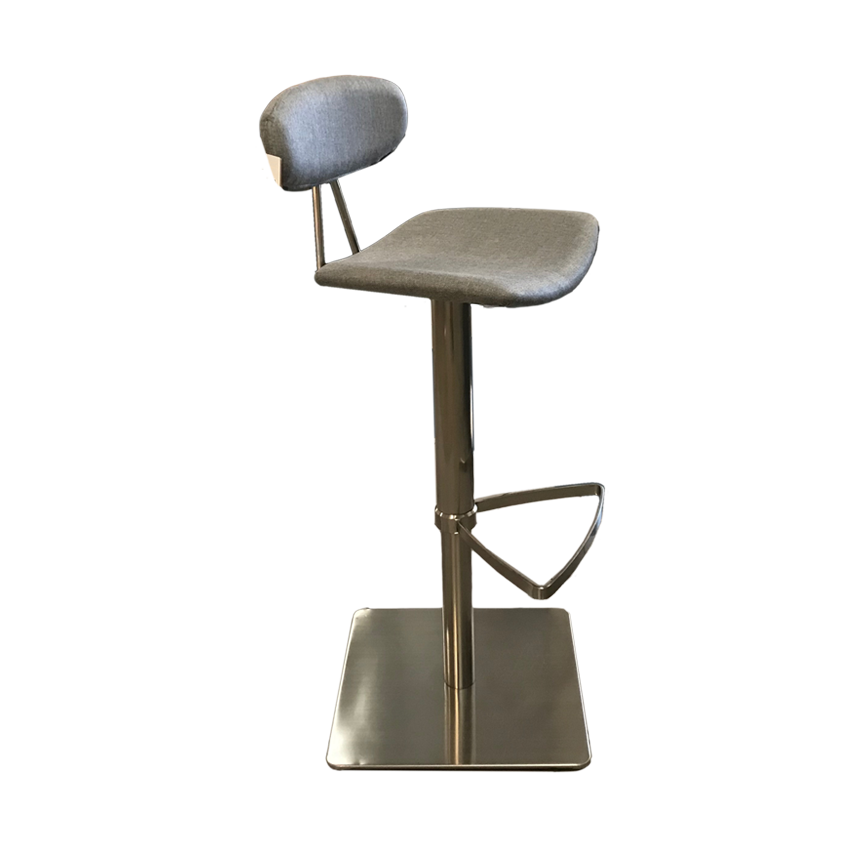 State-of-the-art design makes the Lena barstool a show-stopper for your bar area. The seat and back, upholstered in a soft grey fabric, create an appealing textural contrast to the sleek brushed steel base. Adjustable height allows you to find the proper placement to rest easily as you eat, drink or socialize.