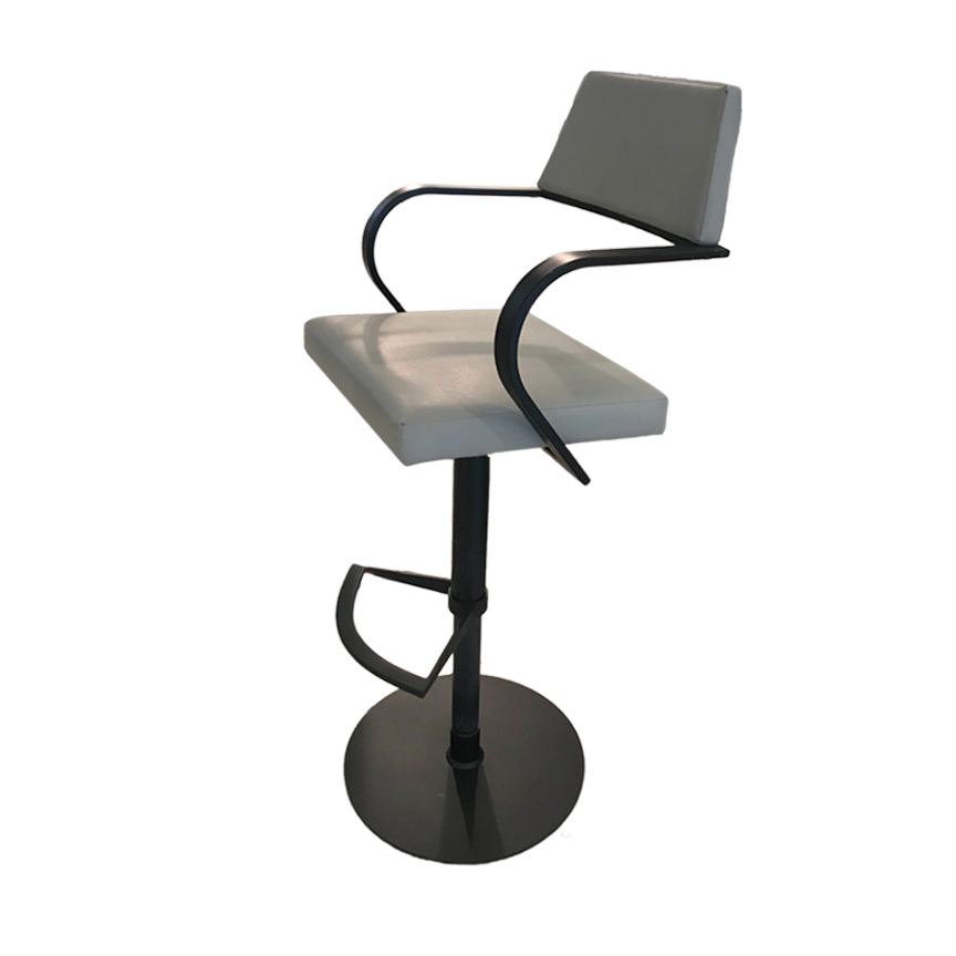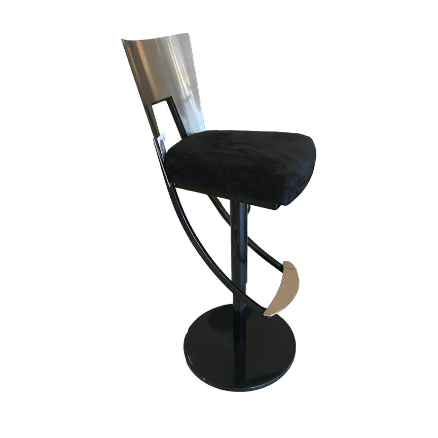 The Regal barstool is a mix of modern materials resulting in an elegant look for your bar space. A black upholstered seat and onyx finished base with foot rest balances beautifully with the champagne plated back for a clean contemporary look.